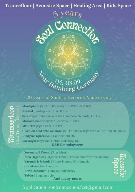 Next party : Soul Connection 5 Years vs. Suntrip Records 20 Years Where : near Bamberg (Germany) More infos : soulconnection.fest@gmail.com |